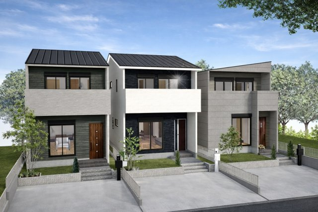 【外観パース】完成予想パース(左から1→2→3号棟)